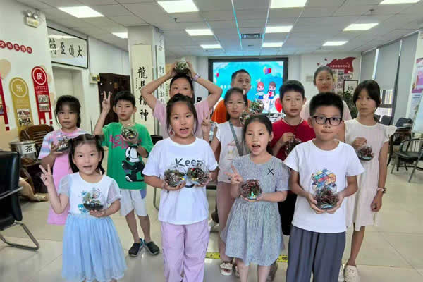 第二場活動是“生態(tài)環(huán)保微景觀制作”。結(jié)合社區(qū)綠化養(yǎng)護與生態(tài)治理需求,社工先向孩子們科普社區(qū)生態(tài)系統(tǒng)構(gòu)成、植物養(yǎng)護知識,以及微景觀對改善局部環(huán)境、提升社區(qū)美觀度的作用,隨后給大家分發(fā)玻璃容器、多肉植物、營養(yǎng)土、裝飾砂石等材料,指導(dǎo)大家根據(jù)植物生長特性,分層鋪設(shè)基質(zhì)、搭配植物、設(shè)計景觀,親手制作專屬生態(tài)微景觀?;顒又?,大家不僅掌握了植物養(yǎng)護的科學(xué)方法,更通過微觀生態(tài)模型,理解了社區(qū)宏觀生態(tài)治理的“平衡理念”。