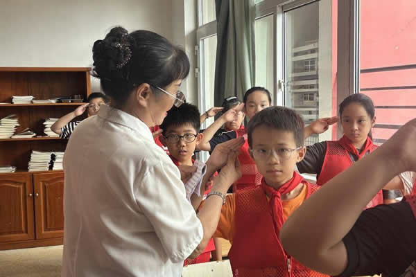 “敬禮不僅是一個動作,更是表達對祖國、對先烈的崇高敬意,姿勢要端正,眼神更要堅定。”在軍事技能講解環(huán)節(jié),袁志華采用“三步教學(xué)法”教授同學(xué)們立正、稍息、敬禮等軍事訓(xùn)練基礎(chǔ)動作,先拆分講解動作標(biāo)準(zhǔn)再進行動作示范,最后手把手指導(dǎo)。大家紛紛模仿練習(xí),挺直的腰板、標(biāo)準(zhǔn)的手勢,展現(xiàn)出蓬勃的少年朝氣。