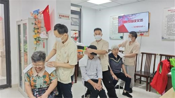 “您看,頭部這樣緩慢左右轉(zhuǎn)動(dòng),每個(gè)方向停留5到10秒,重復(fù)幾次就能放松頸部肌肉。”楊老師邊示范邊講解,還細(xì)致分享了肩部環(huán)繞、腰部扭轉(zhuǎn)等簡(jiǎn)單易學(xué)的動(dòng)作,特別提醒老人們要根據(jù)自身狀況控制運(yùn)動(dòng)強(qiáng)度,避免過(guò)度勞累,老人們聽(tīng)得認(rèn)真,跟著反復(fù)練習(xí),現(xiàn)場(chǎng)互動(dòng)頻頻。剛體驗(yàn)完按摩的張阿姨笑著說(shuō):“楊老師教的動(dòng)作很實(shí)用,按摩完再活動(dòng)活動(dòng),肩膀舒服多了,社區(qū)這服務(wù)太貼心!”